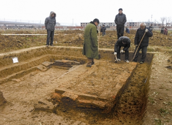 核心提示:2012 年元月份,一家牧业公司在固镇城关镇大楼村“白谷堆”挖地基。由于此前村民在农耕时发现过古墓葬,村民立即向文物部门报告。接到电话后,固镇县文物局对该区域进行钻探,结果发现了38座墓葬,而且绝大部分是东汉中晚期的墓葬。