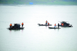 3月14日,搜救人员在浔江江面上搜救失踪人员。