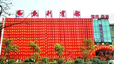 “这家酒店的来头太大了吧!”3月18日上午,徐先生路过当地宁芜路上的林业局附近时,马路对面的一大片红色引起了他的注意。徐先生走近一看,眼前所见还真让他吃惊不小。