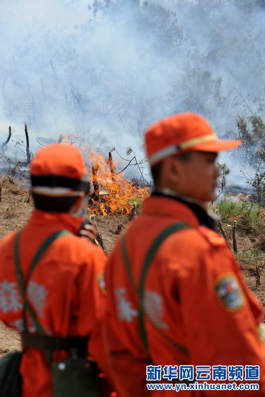 3月30日,森林武警在云南省晋宁县昆阳街道办事处清水河村的森林火灾隔离带旁警戒。新华社记者 蔺以光 摄