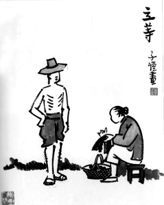 行列并不如此的单简:前后左右还络绎的拖着一大群男女,各式各样的人们都有,红红绿绿的服色,高高低低的身材,老老少少的形态……这些也不尽都是村中的闲人,不过他们共同的目的都是为看热闹而来的罢了。尤其是小孩子们,薄片小嘴唇笑都笑得合不拢来,两只手比着种种滑稽的姿势,好像觉得比看四川来的“西洋镜”还有趣的样子,拖着鞋子梯梯塔塔的跑,鞋带有时还被人家踩住了,立刻就有跌倒的危险,小朋友们尖起嗓子破口便骂,汗水在他们的头上像雨珠一般的滴下来。