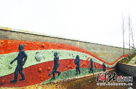记者在现场看到该景点位于剪纸广场的西北角,河卵石铺装成环形的、抽象的小河,代表桑干河,环绕着剪纸广场,在桑干河的上游是泥河湾。