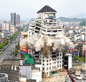 “我们在爆破前,就对安全进行了详细的评估。爆破方案由中国工程院院士、中国爆破协会理事长、被誉为‘中国爆破第一人’的汪旭光为组长的专家小组评审通过,最终确定为多缺口折叠式爆破方式,基本确保‘爆堆不出围墙、不碎周边建筑一块玻璃’的目标。”爆破指挥部的相关负责人说,这次总共用了200多公斤的炸药,三声爆破一气呵成,完全达到了预期目的。