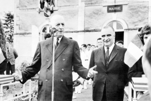 1962年,时任总统戴高乐发表演讲。身旁是时任总理乔治·蓬皮杜,他在1969年至1974年出任第五共和国第二任总统。
