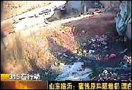 在山东省临沂市的蒙阴县和平邑县,记者看到一些加工厂里,遍地都是露天晾晒的桃肉。一些老板告诉记者,这里加工桃肉的工厂很多,但大都没有厂名和卫生许可证。腌渍桃肉的地方就是路边的露天水泥池,记者看到:一个大水泥池里泡着5万斤左右的桃肉,旁边垃圾遍地,污水横流。