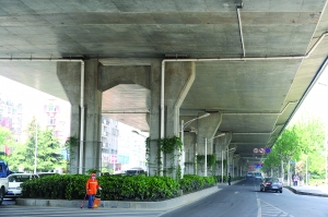 记者询问了一个路经高架的市民赵女士,她说:“我还是比较喜欢有茂密爬山虎的桥墩,翠绿翠绿的,看上去都很舒服。”
