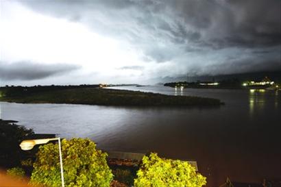 金三角·影像在这张图片中,中央的芦苇地就是狭义金三角。图片下方为泰国,右边为老挝,亮灯的地方就是赵伟的金木棉赌场,而左边则是缅甸,亮灯的地方为糯康地盘上的天堂赌场。晨报特派记者吴磊本版现场图片