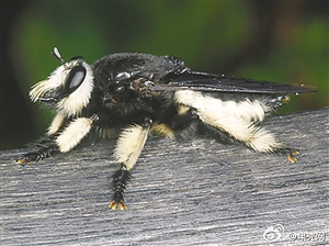 图中这个看起来像是黑白花蜜蜂的虫子,其实是食虫虻科Hyperechia属的物种。食虫虻在英文里被称作强盗蝇(robber flies),说的是它们捕猎其它昆虫时非常彪悍,就像强盗一样。