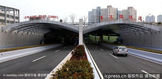 4、军工路隧道,是黄浦江上的一座双层公路隧道,东线已经于2011年1月28日通车,西线由于金桥路施工暂缓开放。军工路隧道是上海中环线的组成部分为,南北走向,北起杨浦区军工路,向南穿越黄浦江后止于浦东新区金桥路张江路,全长3050米,双向8车道,设计时速80公里。