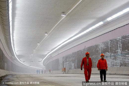 3、翔殷路隧道,是我国目前直径最大、距离最长、行车速度最快的越江公路隧道。