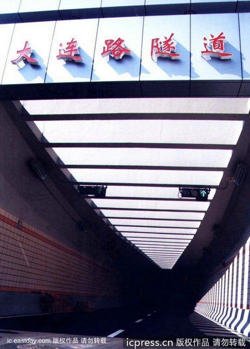 5、大连路隧道,开工于2001年5月,采用盾构法施工的双向四车道隧道,全长2526.88m,首次采用了厚度480mm的超薄混凝土管片。为了保证隧道内各项“亲民”指标的稳定性,大连路隧道特地安装了国内最先进的计算机监控系统,系统坐落在大连路隧道浦西入口东侧管理大楼内的中控室,与以往隧道的中控室有所不同,用于控制整个系统的5台计算机,不仅能发挥联动作用,还能实现“单兵作战”,也就是说,大连路隧道已一改以往其它隧道监控管理中不同计算机只能处理不同系统的模式,在正式运营后,中控室的任何一台机器都可对整个系统进行调配。