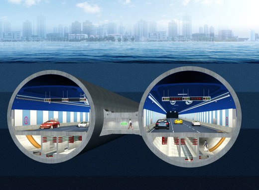 本工程采用双管单层盾构法施工,盾构内径为10.36米,按照双向4车道规模建设,同步建设隧道监控系统、供电照明系统、给排水及消防系统、通风系统和交通标志标线、信号灯、绿化等附属工程。