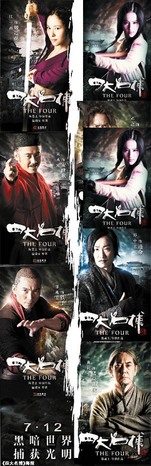 本报讯(见习记者 王淳)从2001年何润东版本的《四大名捕斗将军》起,影视剧制作方们纷纷开始“迷恋”上了改编《四大名捕》,于是就有了2002年吴奇隆版的《名捕震关东》,2004年钟汉良版的《四大名捕会京师》,2008年TVB版的《少年四大名捕》。然而,除了《少年四大名捕》外,温瑞安对之前已有的版本都表现出了难以忍受的态度。在2004年的一次武侠座谈会上,温瑞安就透露:“尽管香港无线已经买下了《少年四大名捕》的电视改编权,但我在签约时就约法三章,另外我也相信无线对原著改编不会离谱。你们放心,绝对不会出现披着床单走来走去的无情。”显然,温瑞安对于吴奇隆版的《名捕震关东》仍然耿耿于怀。如今,电影版《四大名捕》即将上映,剧中的无情不但腿脚利索,还变成了女人,因此也引来众多温瑞安铁杆书迷的炮轰。对此,导演陈嘉上回应表示“经过了温瑞安先生的同意,让我放胆去写。”看来,温瑞安对于此次陈嘉上改编的电影《四大名捕》颇有信心。