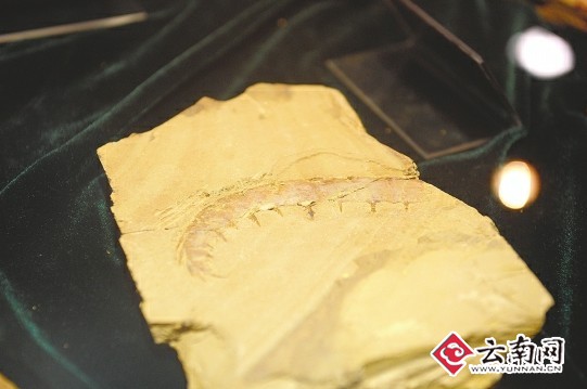 在云南虫化石的展台前,记者停住了脚步,盖因它的名气太大了。云南虫曾被通俗地解读为是人类的祖先,很长一段时间,云南虫几乎成了澄江动物化石群的形象代言。对于“云南虫是人类的祖先”的说法,侯先光并未否定,但也不完全赞同。因为如按这个逻辑继续推的话,比它更往前的还有一条鱼。