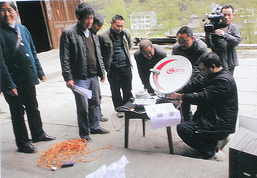 为进一步满足广大山区群众的精神文化需要,近日,在石柱土家族自治县沙子镇沙子村,技术员在为村民安装调试直播卫星电视接收器,该县自启动了直播卫星电视“户户通”工程以来。截至目前,全县32个乡镇均实现了直播卫星电视全覆盖。图为技术人员正在为农户安装调试直播卫星电视接收器。通讯员 马朋兹 摄