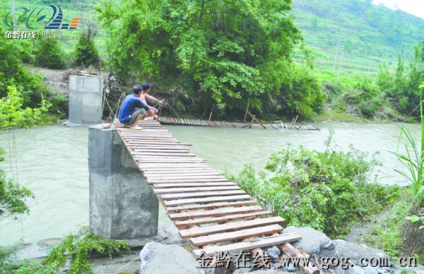 去年11月份,坝陵村的42户村民集资8000余元,又投工投劳,终于在溜索下游约100米的地方修起了一座水泥桥墩、木板铺就的桥。此后,村民们干活方便多了。