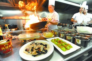 4日,颐之时酒楼特级厨师廖陈在制作拿手的川菜菜式:锅巴海参。记者 杨新宇 摄
