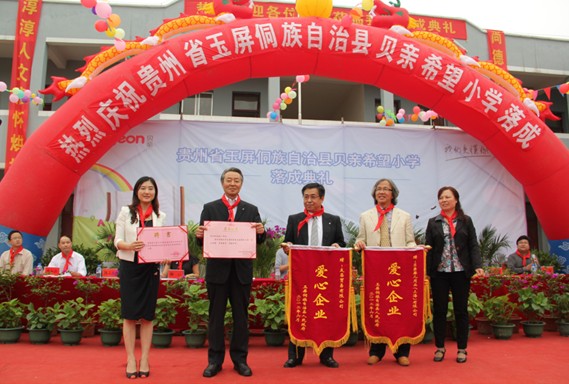 2012年6月6日,在欢乐的六一儿童节之际,玉屏侗族自治县小学的孩子们收到了一份非常特别的礼物,一所崭新明亮的校园。这正是由贝亲婴儿用品(上海)有限公司捐助援建的第四所希望小学,当天在贵州省玉屏侗族自治县举行了隆重的新校园落成典礼。贝亲公司领导一行参加了此次活动。