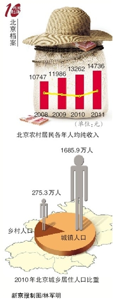 市统计局发自2004年的一份分析报告《北京城乡差距表现、原因及加快城乡统筹的思路》显示:1993年至2003年,北京城乡居民收入比例由1.51:1,扩大到了2.14:1。在城乡二元管理体制下,面积10倍于中心城区的农村,2003年地方财政收入仅占全市的7.5%,人均年教育支出相差1.9倍。