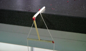 “被撑开的棉线对第二根火柴棒有一个往里的挤压力,这个挤压力保证了棉线和火柴间有足够的摩擦,为第三根火柴提供了支撑力。没有第三根火柴棒,桌面上的火柴棒是撑不住的,三根火柴棒形成了一个整体支架。”