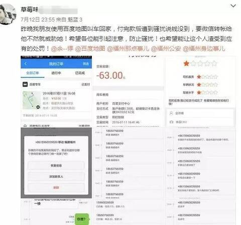 7月11日下午,高二艺考女生用百度地图叫百度专车,支付车费后,却遭到专车司机如此短信,吓坏她了。