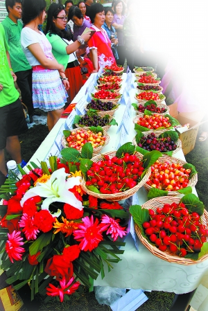 俗话说“樱桃好吃树难栽”,樱桃树从栽种到结果需要6年时间,而寿命也就20年左右。樱桃沟的果农们像呵护婴儿一样呵护着樱桃树,给树施的是羊粪、鸡粪,每棵树下都挂着一个小玻璃瓶,装着用红糖、白酒、食醋调配成的杀虫剂。果农们摘樱桃都轻手轻脚,竹制的果篮里还垫了一层柔软的毛巾,生怕磕碰了这些娇嫩的果子。