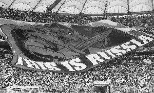 时值1982年世界杯,苏联队和波兰队参加复赛。当时波兰处于军管政府期间,波兰球迷高举20米长的波兰国旗以示对苏联的不满。虽然那场比赛,苏联队在场面上占据了相当大的优势,但是顽强的波兰队最终在比赛结束的时候,将比分锁定在0比0,由于此前波兰队依靠博涅克的“帽子戏法”3比0战胜了比利时队,而苏联队仅仅1比0小胜比利时,净胜球的优势使得波兰队最终淘汰了苏联队,整个球场中都是波兰球迷的欢呼,将这场比赛看作精神上的胜利。