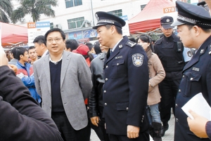 ?龙华新区党工委委员、公安分局局长李龙文到龙华办事处“三打两建”专项行动现场指挥督战。