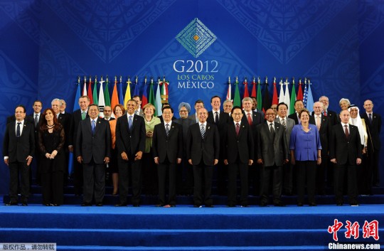 当地时间6月18日,二十国集团领导人第七次峰会在墨西哥洛斯卡沃斯继续进,图为各国领导人合影。
