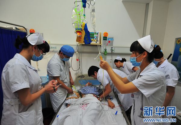 6月20日,福建霞浦县医院的医生护士在抢救重伤员。当日2时许,一辆从无锡开往厦门的大巴闽DY5719行经福建省宁德市霞浦县境内沈海高速公路牙城段陇头高架桥时侧翻坠入50余米的深谷。据介绍,车上共有45人,其中死亡17人、重伤3人,其余人员生命体征平稳,伤员已送到当地医院抢救。事故发生后,宁德市公安、消防、边防、交警、路政、医疗救护等部门展开救援行动。事故原因正在调查中。 新华社记者魏培全摄