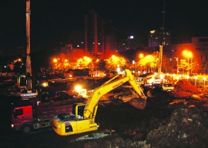 图为人民广场站施工现场