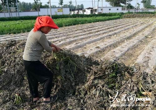贺兰县张亮村农民在翻看田地里已将近腐烂变质的茭瓜