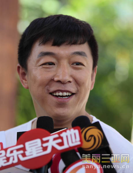 7月3日,黄渤在电影《101次求婚》海南陵水清水湾拍摄现场接受记者采访。