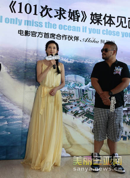 7月3日,电影《101次求婚》导演陈正道(右)和主演林志玲在海南媒体见面会上亮相。