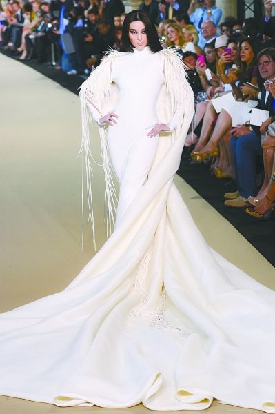 范冰冰于巴黎时间7月3日下午为法国著名设计师 Stephane Rolland 的巴黎秋冬高级定制压轴走秀。当晚范冰冰身着 Stephane Rolland 为其量身打造长达六米的纯白色丝质贴身长裙,在巴黎城市建筑与古迹博物馆缓缓走过,表情硬朗坚定却又展示了女性曲线的柔美。