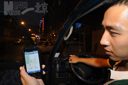 7月5日,市民在北京王府井通过手机查询停车场信息。