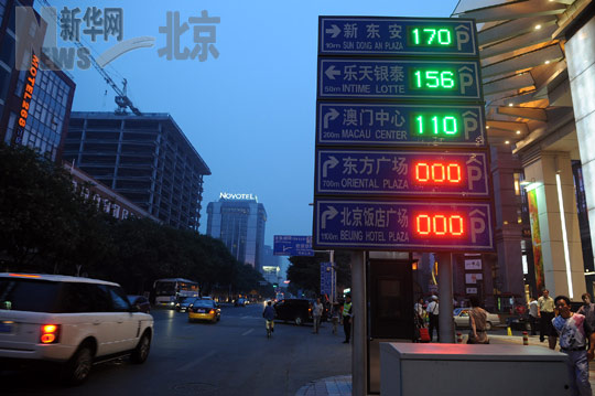 7月5日,北京王府井路侧诱导屏发布动态停车信息。