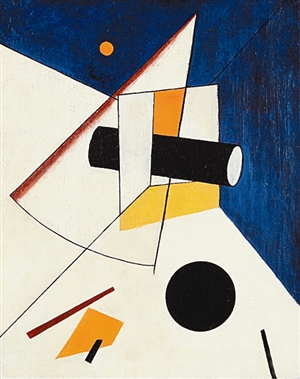 自左至右 《至上主义构成》(1915) 伊万普尼 《组合》(1934) 奥托·弗隆德里希 《习作 立体派裸体》(1913) 柳博芙·波波娃