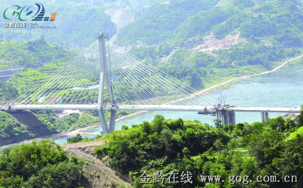 金黔在线讯 7月4日,总投资1.2亿元的思南县城乌江三桥主桥成功合龙。