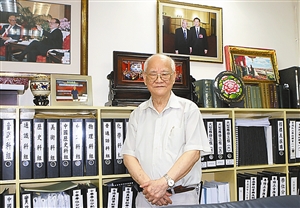 吴康民先生在自己曾任校长28年的香港培侨中学办公室。 深圳特区报记者 刘秋伟 摄