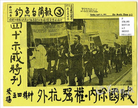 1970年12月19日,普林斯顿、耶鲁、宾州、康奈尔等大学,以台湾留学生为主成立了“保卫中国领土钓鱼台行动委员会”。1971年1月29日,北加州9所高校500名留学生集结旧金山,举行保钓游行示威。图为1971年4月10日2000多留学生参加的保钓示威游行。这次大游行提出了“反日、反蒋、反帝”和“发扬五四精神”的口号。并用募捐的6万美元,在《纽约时报》刊整版广告,宣示“钓鱼岛是中国的领土”。
