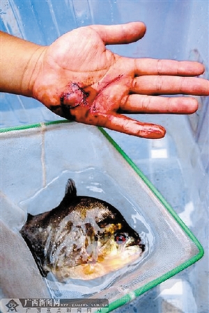 为何远在南美洲的食人鱼会出现在柳江河?据渔政部门透露,食人鱼最早是作为热带观赏鱼被不法人士引入国内的,近年来,广西乃至国内不少江河均有发现食人鱼的消息见诸报端。至于这条咬人的鱼是否就是南美洲的食人鲳,还有待渔政部门进一步调查核实。