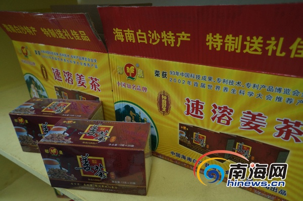 白沙县姜茶加工厂的“椰泉”牌姜茶已成为白沙的品牌产品(南海网记者李庆芳摄)