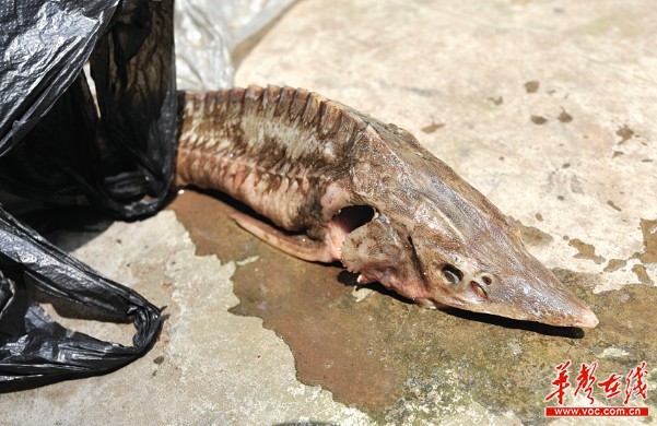 华声在线-三湘都市报7月12日讯 尖尖的鱼头,嘴巴藏在头部下,鱼背上还有板骨……10日晚上,家住开福区第一湾小区的康先生到浏阳河边散步,在岸边的浅滩上发现了一条死鱼。他发觉,这条鱼与国家珍稀保护动物中华鲟很相似,便特意将鱼带来本报,希望联系专家鉴定。这条鱼会是中华鲟吗?