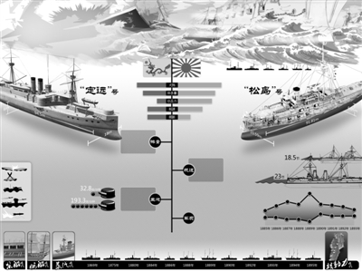 1886年8月,北洋水师“定远”号及“镇远”号停泊在日本长崎维护时,其坚甲巨炮引起日本朝野一片恐慌。自此之后日本便下定决心以二舰为假想敌,制造了著名的“松岛”、“严岛”、“桥立”三景舰。