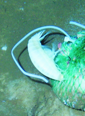 未知名的深海生物在捕食投放的饵料(6月27日摄)。