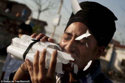 这些民间艺人自称“最纯粹的勇者”。他们表演咀嚼玻璃灯管,让人用大棒打碎放在脸上的椰子,允许卡车从身上碾过等极端绝技。通常情况下在表演完毕后,他们都血流不止,眼眶淤肿,惨不忍睹。【更多】