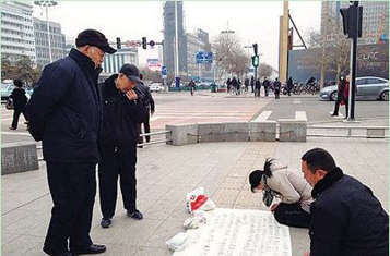 受害女孩的父母从河北老家赶到包头处理后事,后因无钱而在街头乞讨。
