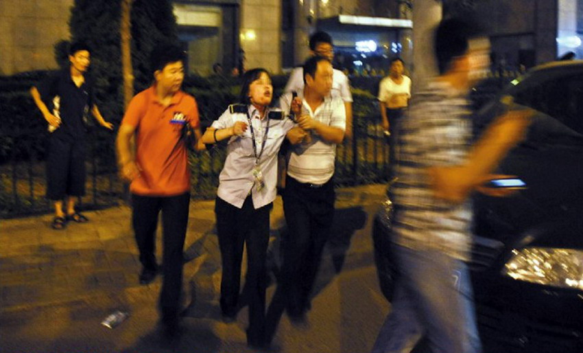 图为女安检员被成功解救后仍面带惊恐。北京青年报 黄亮 摄