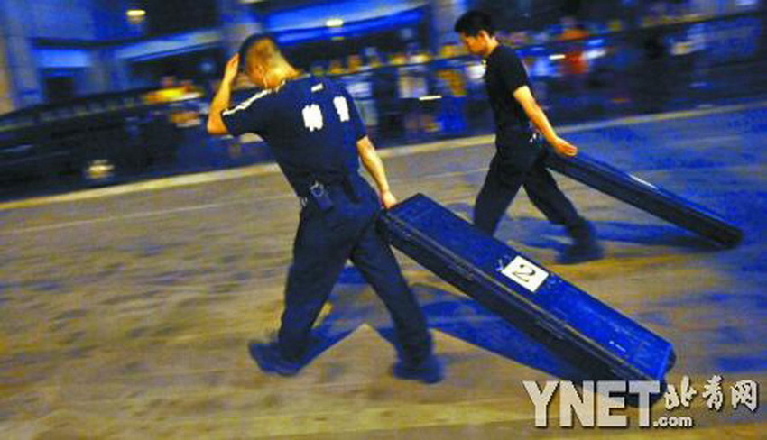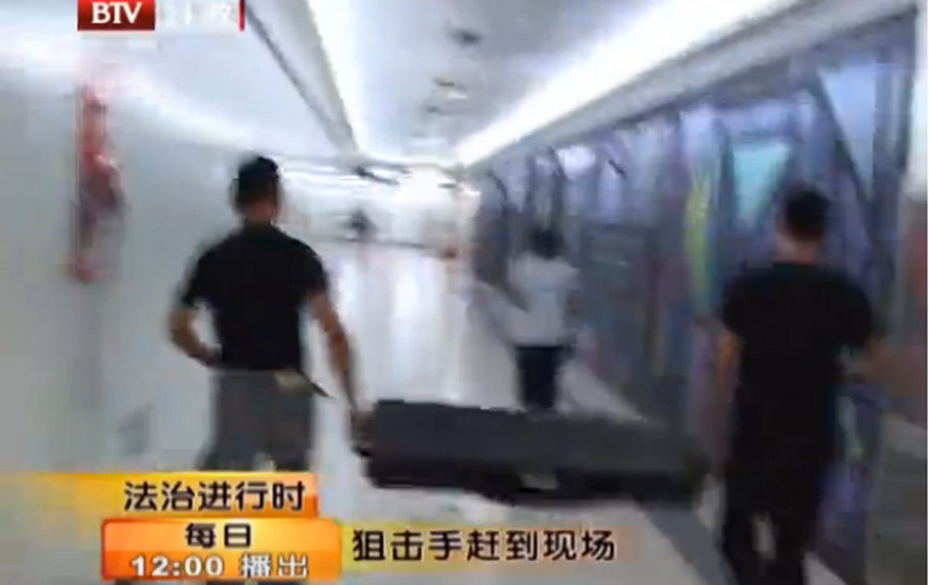 7月20日零点45分,警方将劫匪尸体抬出地铁。19日晚上9点多,在地铁10号线呼家楼站内,一名男子持刀将一名女安检员劫持。据北京市公安局官方微博通报,经现场谈判无效,特警总队蓝剑突击队警员开枪将该男子击毙。